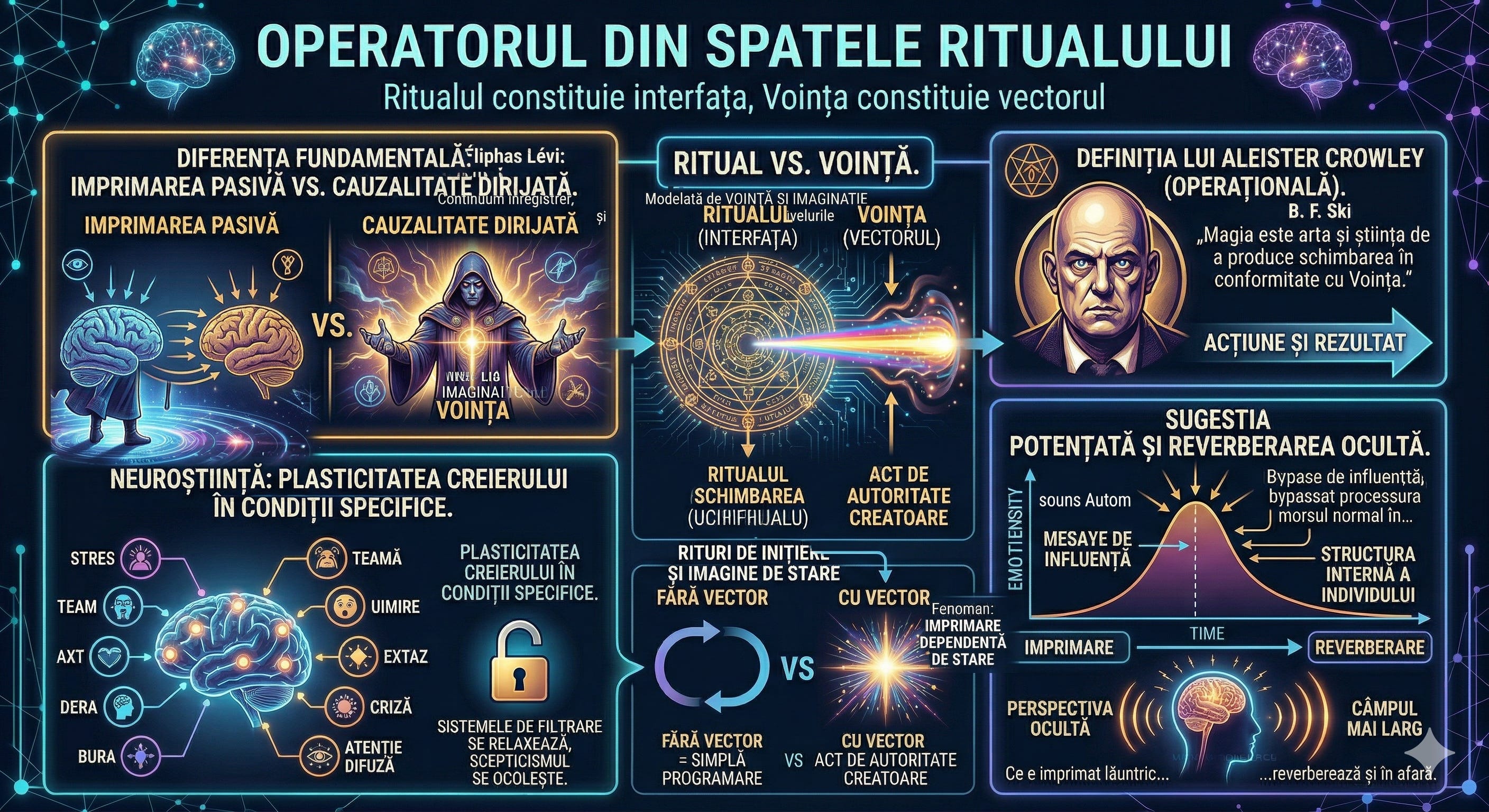 Magia a fost descrisă drept arta și știința de a produce schimbarea în conformitate cu voința. Psihologia o numește condiționare. Neuroștiința o numește modulare neurală. Lingvistica o numește constrângere structurală. Însă niciuna dintre aceste denumiri nu invalidează definiția mai veche. Ele descriu mecanica procesului, nu anvergura sa.