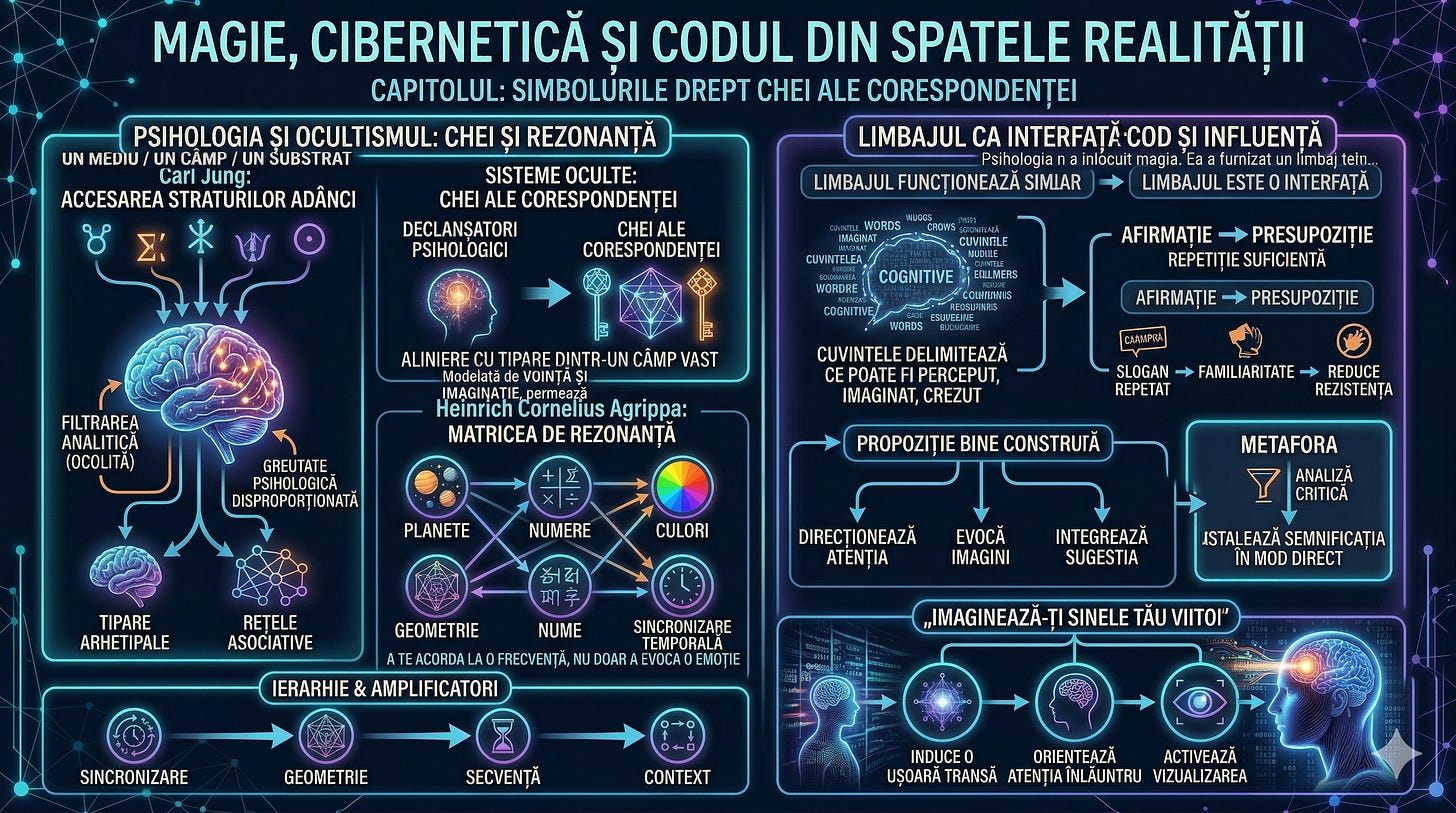 Sistemele oculte merg mai departe. Ele tratează simbolurile nu doar ca declanșatori psihologici, ci drept chei ale corespondenței - structuri care aliniază individul cu tipare specifice dintr-un câmp mai vast.